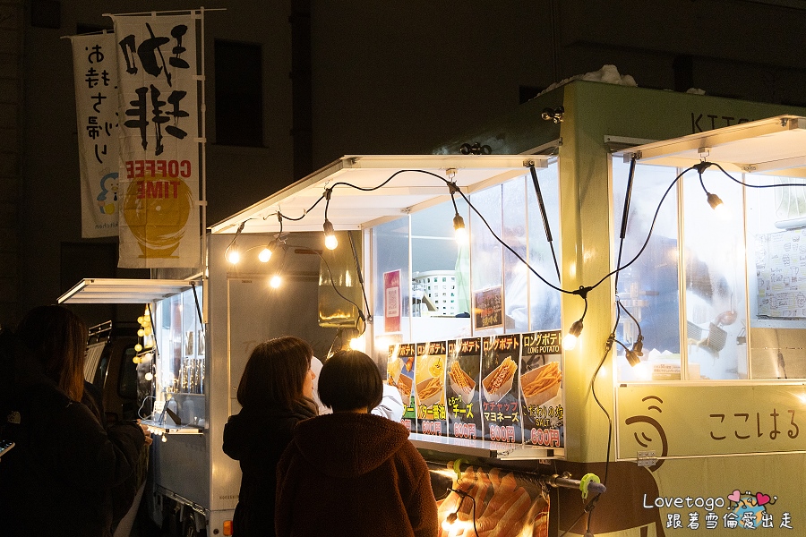 藝術村會場旁設有幾輛餐車,販售炸物和熱飲。在寒冷的冬夜站在戶外品嚐熱騰騰的美食,格外暢快滿足。