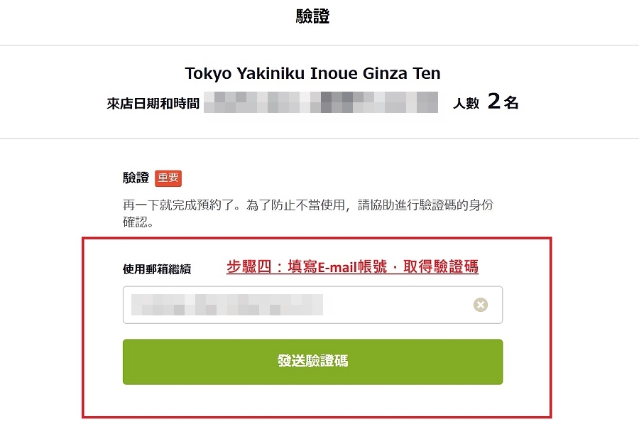 步驟四:輸入 Email 帳號,系統會立刻寄出一組驗證碼到你的信箱。只要在畫面上輸入這組驗證碼,就代表預約完成。接著會收到一封確認信,裡面會有詳細的預約資訊,記得留意信件內容。