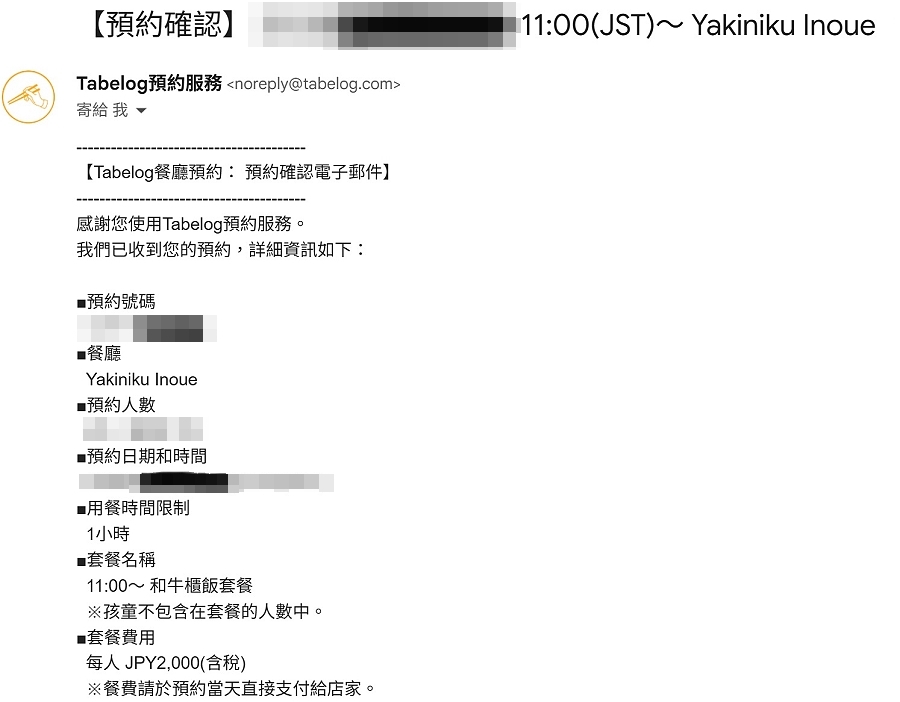 完成預約後,記得打開 Email 信箱,確認是否有收到來自食べログ的確認信件。信件裡會列出預約號碼、用餐人數和時間等詳細資訊,請務必仔細核對,確保內容正確無誤,這樣才能安心前往用餐。
