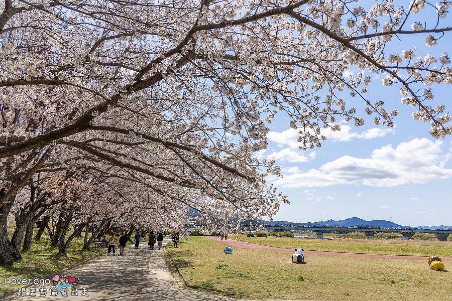 宮川堤的景觀結合了寬闊的宮川河景和宏偉的櫻花帶,在藍天白雲之下,粉嫩的櫻花與平靜的河水形成鮮明對比,遊客可以一邊賞花,一邊享受河岸開闊、清新的氛圍。