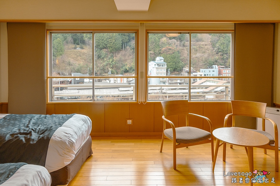 拉開百葉窗,映入眼簾的是下呂車站。小孩最愛窩在窗邊,眼睛緊緊盯著火車進站、出站的畫面,每一輛列車都像是帶來新的驚喜。而我們大人看的是另一種感受—一批又一批的旅客從列車走下來,拖著行李、帶著期待的笑顏,大家不約而同朝著同一個方向而來,就是要在下呂溫泉享受慢活的日子。
