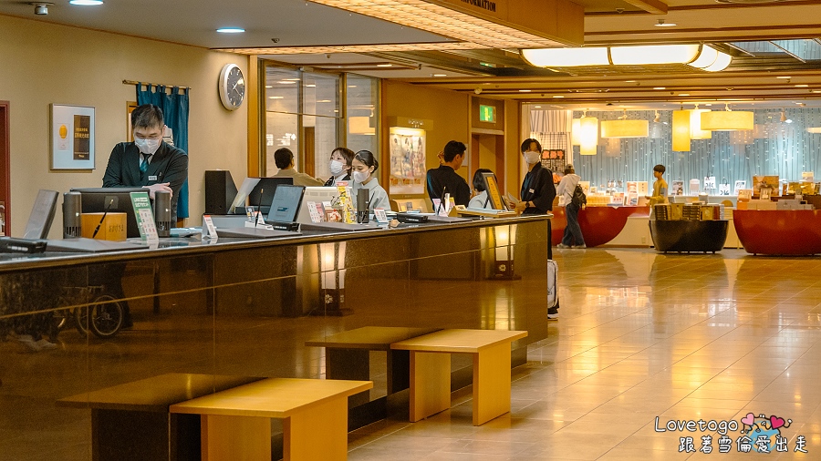 走進水明館大廳時,迎面而來的是寬敞明亮的空間與溫暖氛圍。櫃檯服務人員親切的迎接,仔細確認預約資料並辦理入住手續,最後簡單的為住客介紹飯店的公共設施及溫泉池的使用時間。