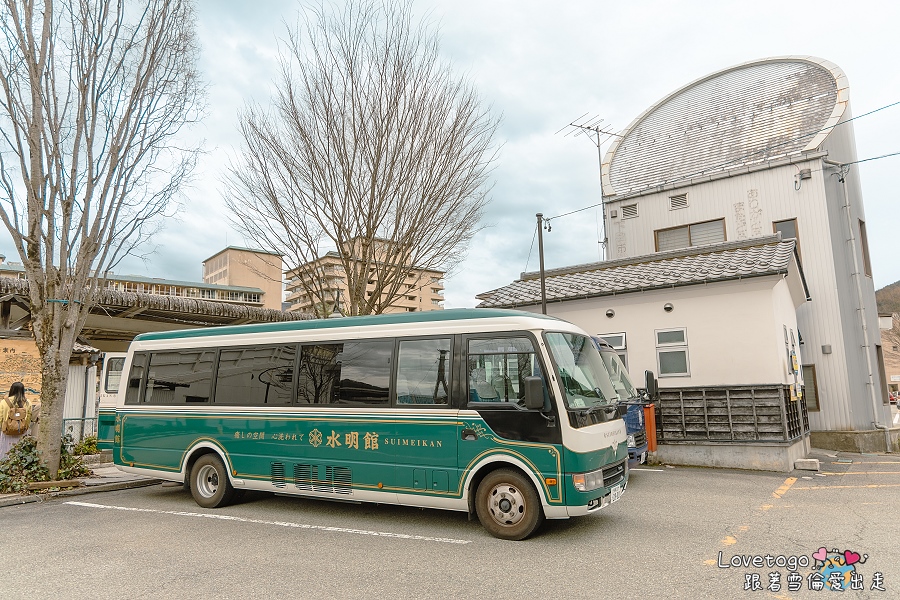 有預約入住水明館的旅客,如果是自駕前來,飯店備有免費停車場,停車完全不用擔心。若是搭乘大眾交通工具抵達,下呂站走到飯店大約只要三分鐘,十分方便。要是行李比較多,水明館也貼心提供免費接駁車,住宿客人只要事先預約,就能輕鬆搭乘直達飯店。