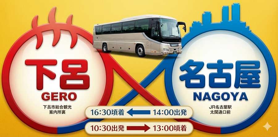 搭直達巴士是最省心的選擇。從名古屋上車後,不用轉乘,約兩個半小時就能直接抵達下呂溫泉。票價比 JR 特急便宜,對想省錢或不想搬行李的旅客來說非常適合。缺點就是時間會比較久,若是遇到塞車也會延誤,而且班次不多,選擇上沒有 JR 特急那麼靈活。但如果想要一路放鬆,不用管轉車或搬行李,直達巴士就是最簡單的選擇。
