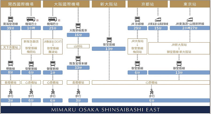 前往 MIMARU 大阪心齋橋 EAST ,不論是從機場還是京都過來都很順暢。 ➤ 從關西機場出發: