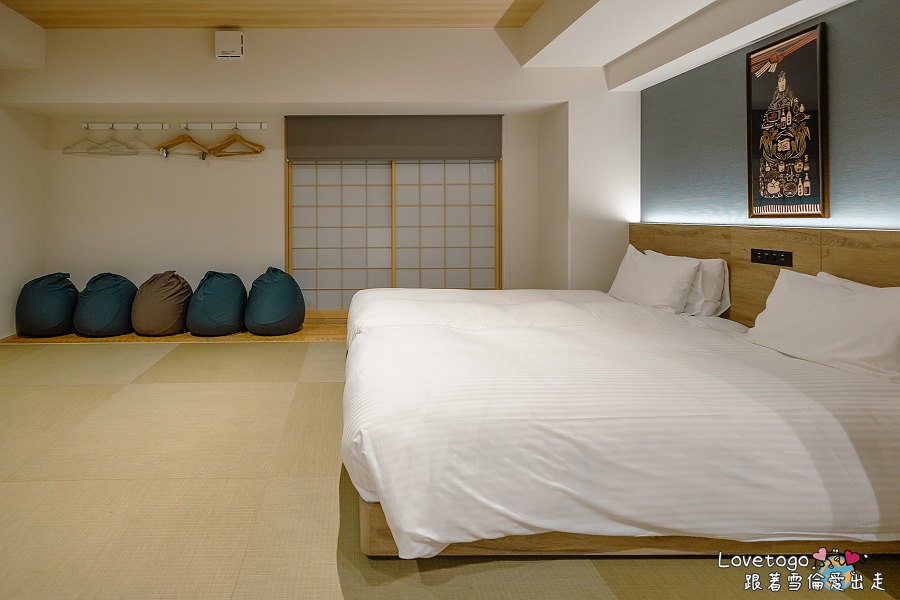 整體空間寬敞舒適,最多可容納 5 人入住,配置兩張單人床,榻榻米區則可鋪設三張日式床墊,非常適合親子家庭或朋友同行。