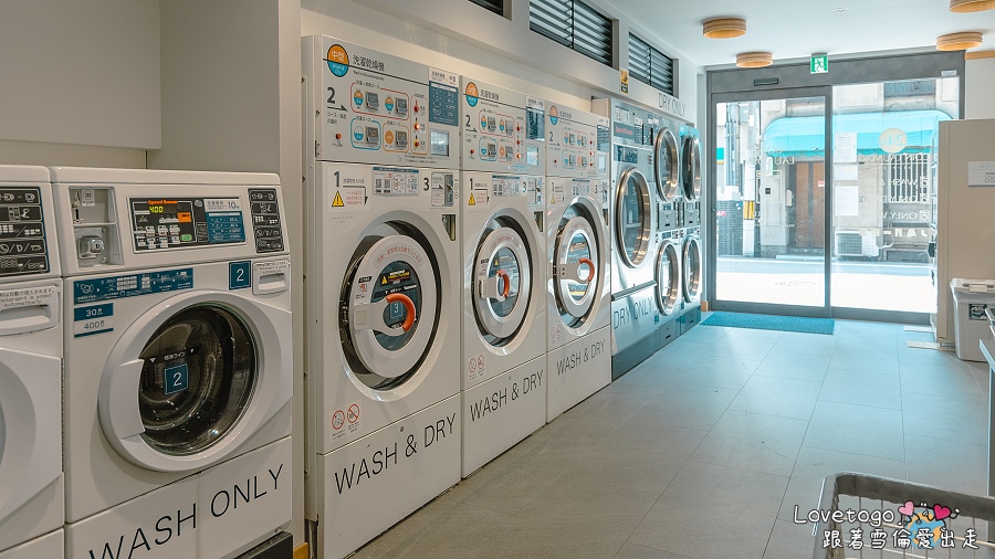 一樓設有投幣式洗衣區,全天 24 小時開放,不僅提供給入住房客使用,外部的客人也能使用 (從不同門進出) 。洗衣空間與飯店相連,房客只需刷房卡即可從飯店內部直接進入。洗衣機與烘衣機皆採投幣式操作,流程簡單易懂,現場也貼有詳細的使用說明。