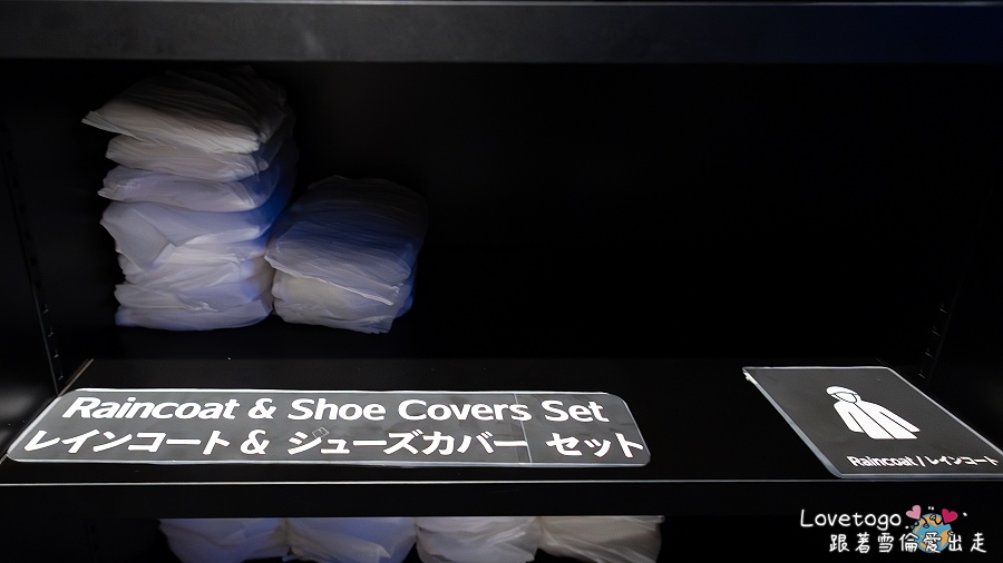 進入 《Massless Amorphous Sculpture》 展區前,工作人員會詢問是否需要加購「雨衣鞋套組」,一組售價為 300 円。由於這個空間充滿漂浮的泡泡,身體有可能會沾到泡沫,擔心衣物弄濕的人可以考慮購買。