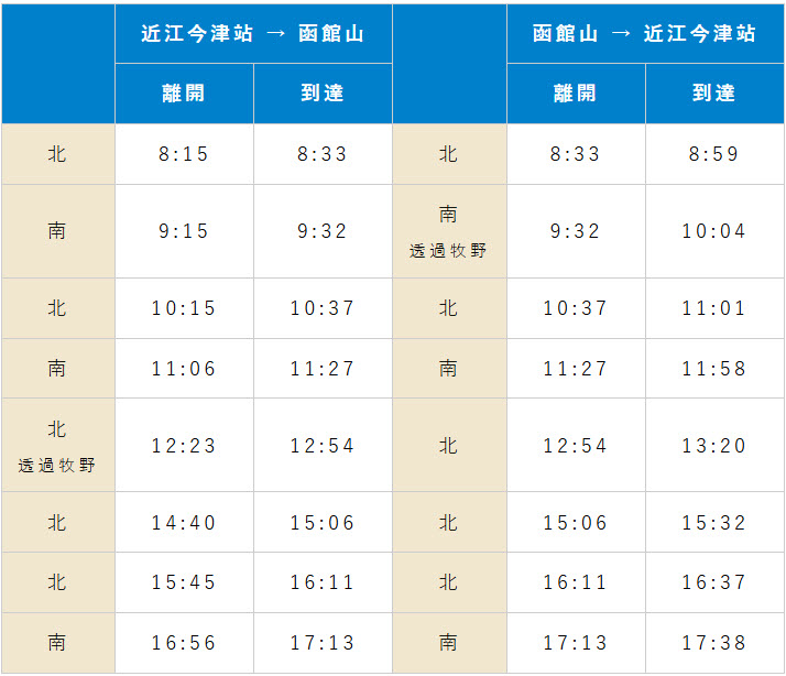 近江今津<>箱館山 巴士時刻表 (2026)|路線圖與時刻表