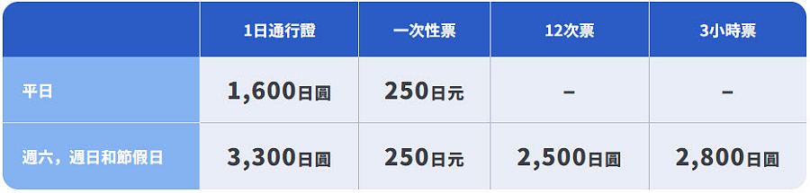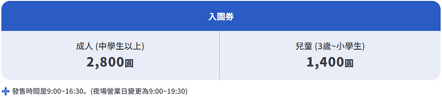 票種與價格一日入園券