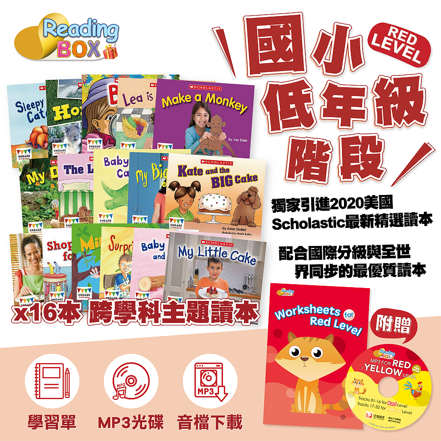 Reading Box 全系列讀本皆由專業外籍老師錄製音檔,並提供讀者免費線上下載。更棒的是,Reading Box 入門組合還附有「學習單」,能幫助確認孩子的學習吸收程度,這樣的安排,讓孩子的閱讀學習更有系統、更有成效。